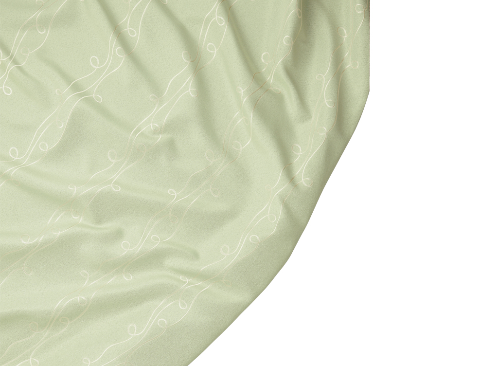 淡いグリーンのベース生地に濃淡のループ線が、