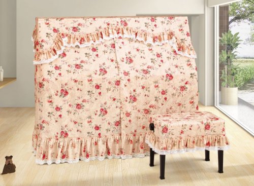 定番のロココなバラ柄、可愛いレース付の綿プリント。